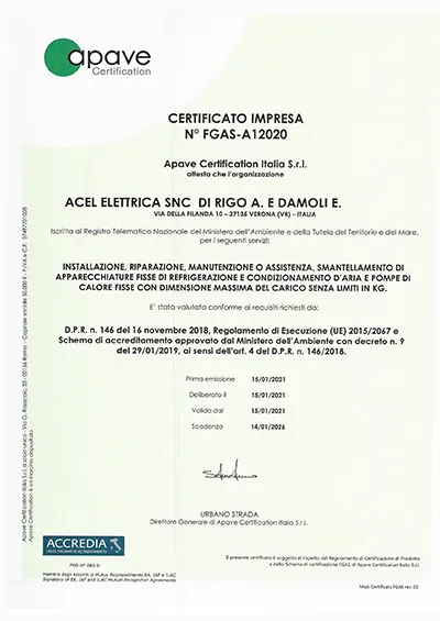 Certificazione FGAS Visualizza il documento >>
