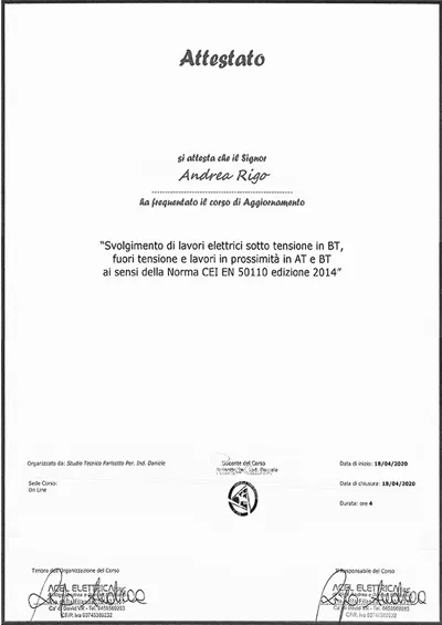 Attestato per lavori elettrici sotto tensione Visualizza il documento >>